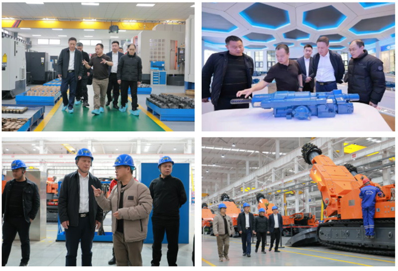 趙桂生董事長一行先后走進(jìn)沃思德鑿巖機(jī)專業(yè)化生產(chǎn)基地及鑫通智慧工廠,實(shí)地考察設(shè)備生產(chǎn)制造流程。在地下煤礦裝備生產(chǎn)車間,公司生產(chǎn)副總劉長勇向考察團(tuán)詳細(xì)介紹了掘進(jìn)機(jī)、掘錨機(jī)等核心裝備的技術(shù)創(chuàng)新與遠(yuǎn)程智能控制研發(fā)成果。